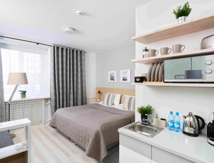 Преимущество нашего отеля - спокойная камерная атмосфера, которая позволит отдохнуть после трудового дня, а также провести деловую встречу.
